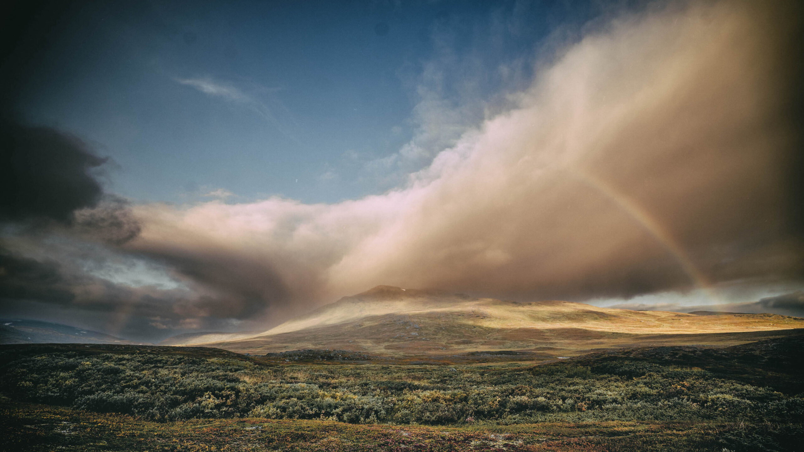 Nach dem ersten Anstieg wird der Regen dünner. Die Wolken reißen auf wie Vorhänge und dahinter stehen Regenbögen. Nicht einer. Viele. Immer wieder neue.