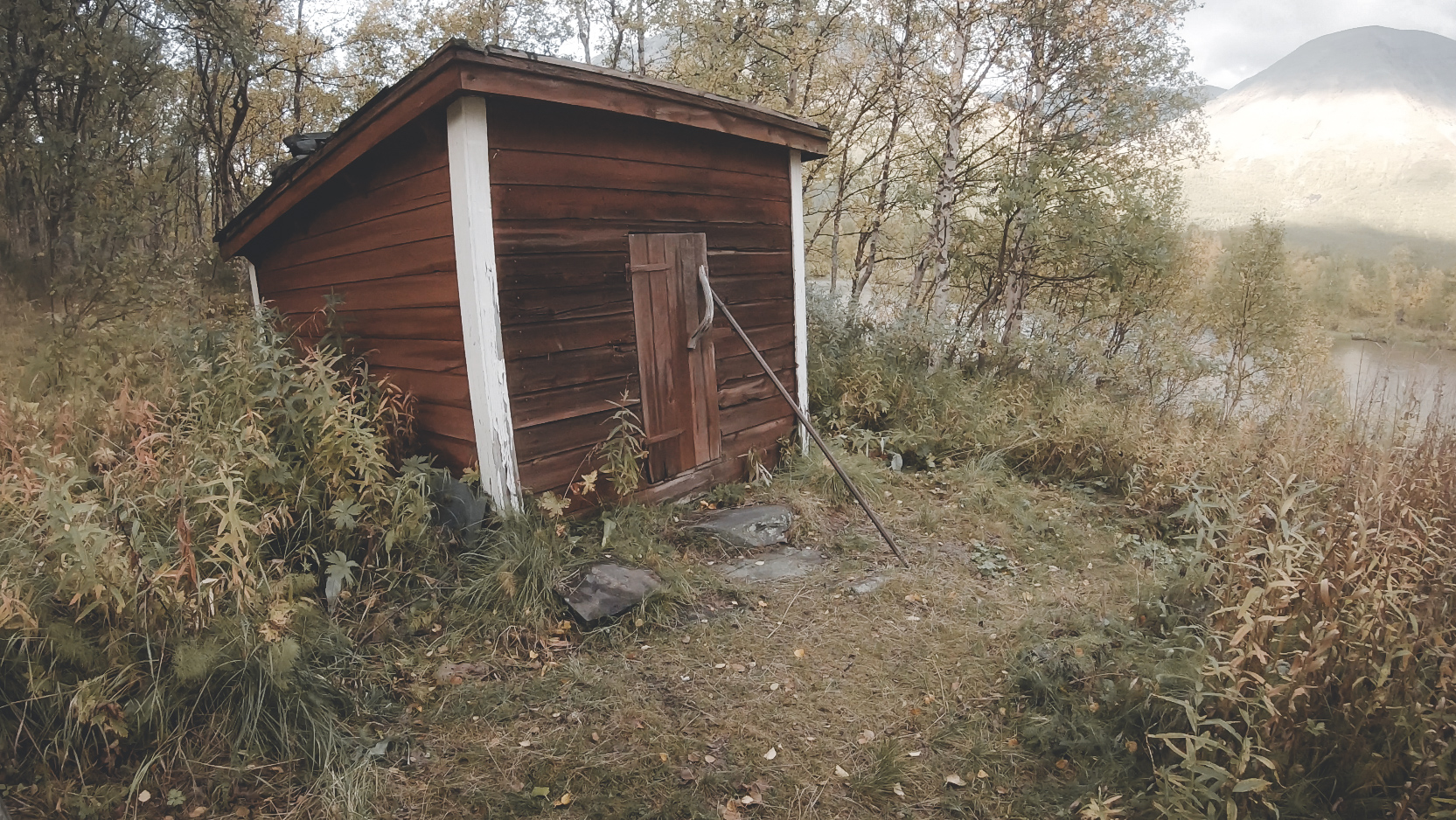 Ich ging, setzte ruhig, hob ruhig. Eine Konzentration, die nicht zerrte oder verlangte. Als die Sonne tief wurde, stand sie plötzlich da. Die kleine, dunkle, alte STF Hütte. Gebaut 1890. Die Tarraälvshyddan.